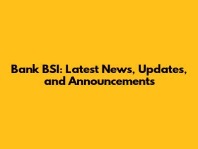 Bank BSI: Latest News, Updates, And Announcements