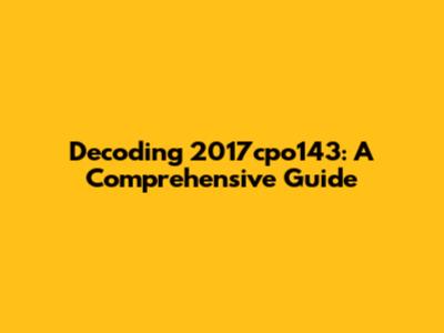 Decoding 2017cpo143: A Comprehensive Guide