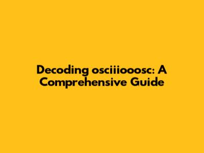 Decoding Osciiiooosc: A Comprehensive Guide