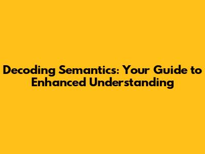 Decoding Semantics: Your Guide To Enhanced Understanding