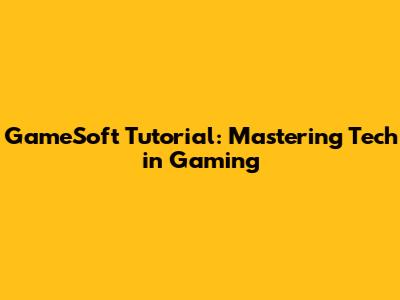 GameSoft Tutorial: Mastering Tech In Gaming