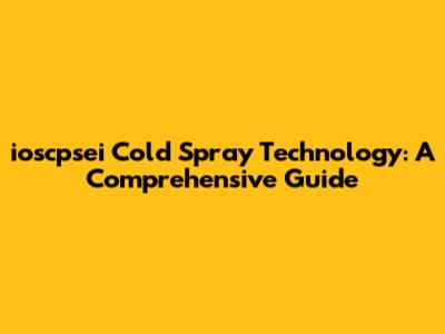 Ioscpsei Cold Spray Technology: A Comprehensive Guide
