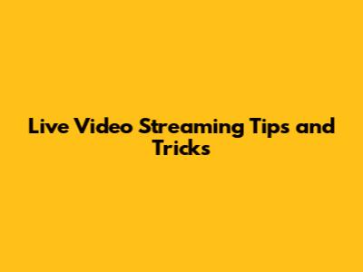 Live Video Streaming Tips And Tricks