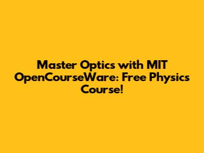 Master Optics With MIT OpenCourseWare: Free Physics Course!