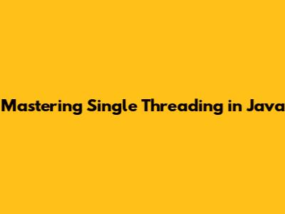 Mastering Single Threading In Java