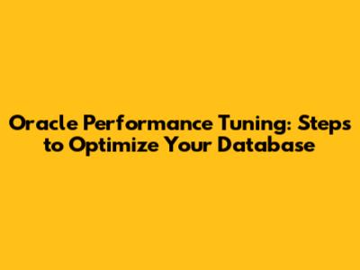 Step-by-Step Guide to Oracle Performance Tuning