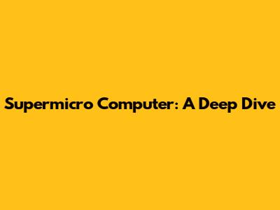 Supermicro Computer: A Deep Dive