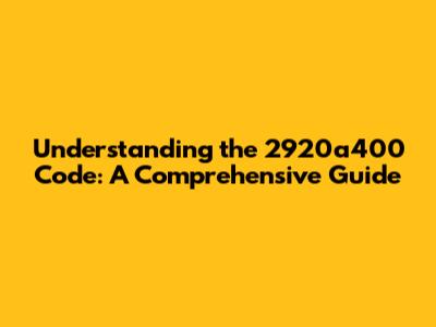 Understanding The 2920a400 Code: A Comprehensive Guide