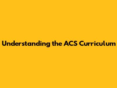 Understanding The ACS Curriculum