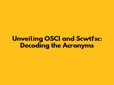 Unveiling OSCI And Scwtfsc: Decoding The Acronyms