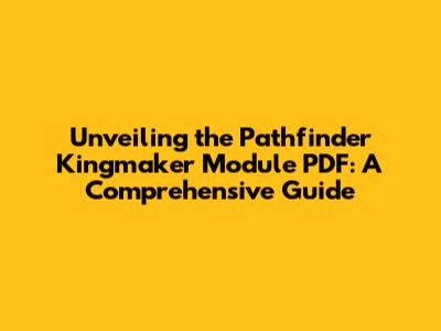 Unveiling The Pathfinder Kingmaker Module PDF: A Comprehensive Guide
